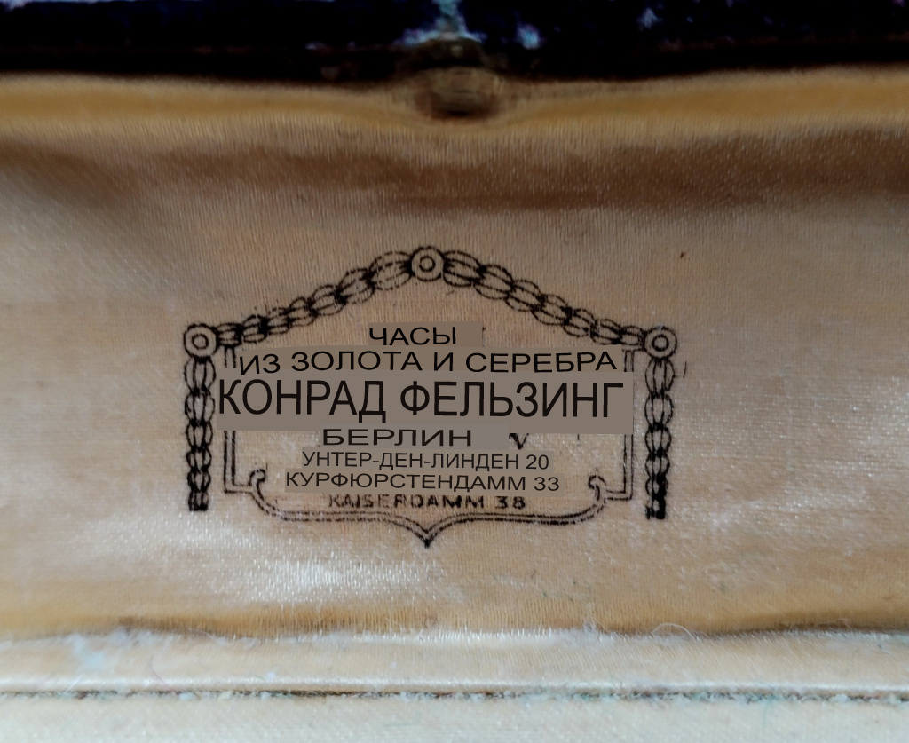 Возможно это дало бы понимание, где могли быть приобретены часы и определить производителя. Понятно, что "корпус русский, механизм швейцарский, а футляр немецкий". Но всё же...