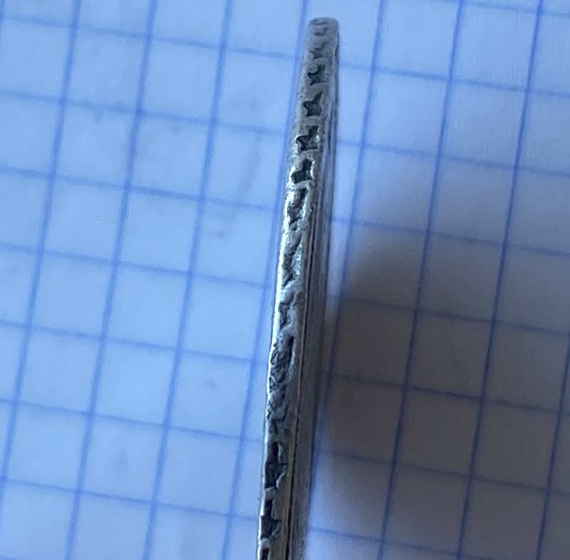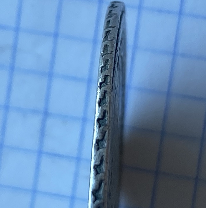 Нужная фотография гурта монеты, желательно по кругу. Гурт - это ребро.